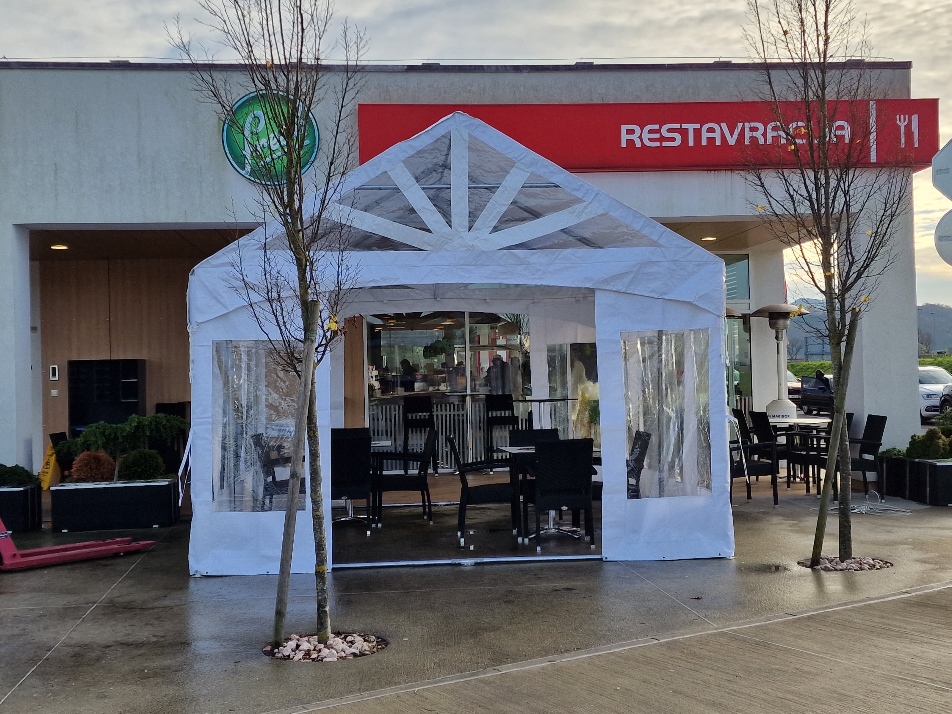 gostinskim terasam ali kot stalno ali začasno skladišče.